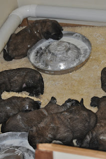 It was a big day for the puppies yesterday , at 3 weeks old, they finally figured out that the content of the puppy dishes was actually consumable and not strictly for playing in!