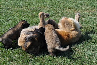The puppies had lots of fun this weekend and all made very clear decisions about what family was going to be their forever home!! This is Addie and a couple of the baby bergers relaxing in between visits!